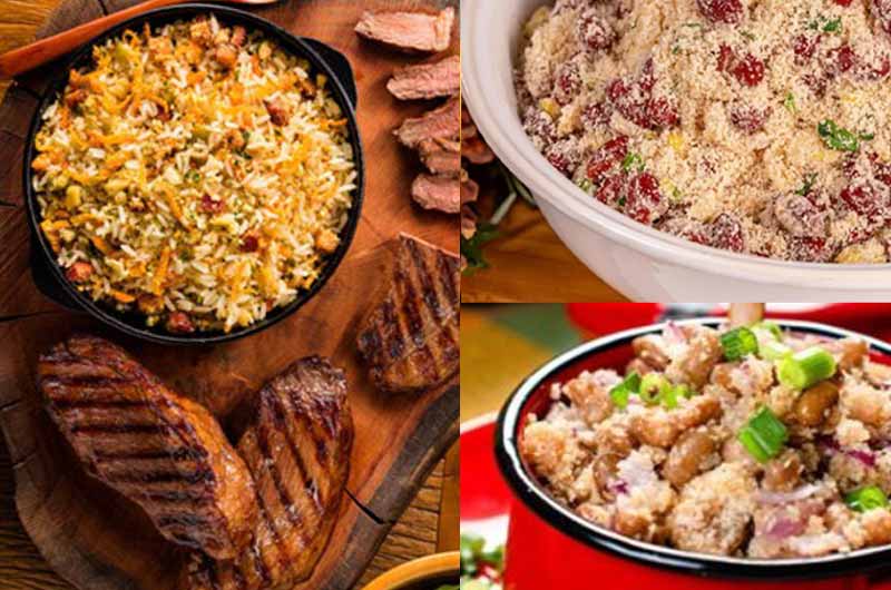 Entre as sugestões estão um arroz-farofa especial, uma farofa de feijão vermelho e uma farofa de feijão com banana — opções que combinam textura, sabor e criatividade para surpreender convidados e transformar o acompanhamento em destaque do churrasco.